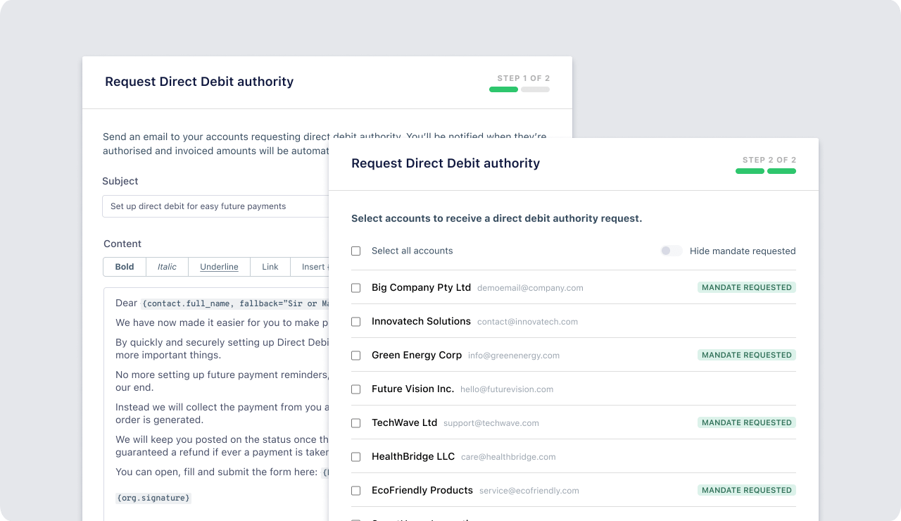 Auto‑pay lets your customers set up Direct Debit so invoices are paid automatically on the due date. Once enabled, payments are collected without manual follow‑up, helping reduce overdue invoices and save your team time.