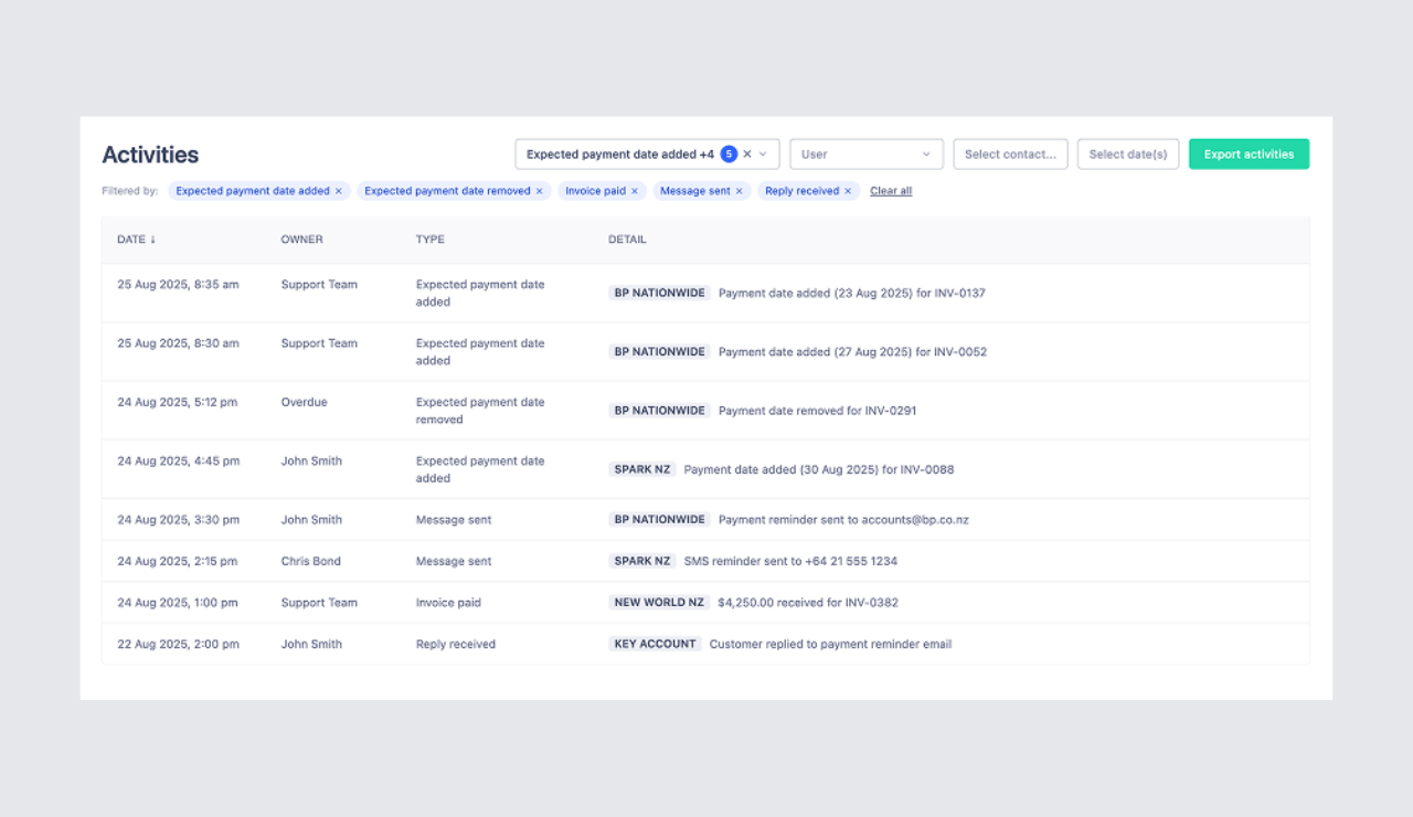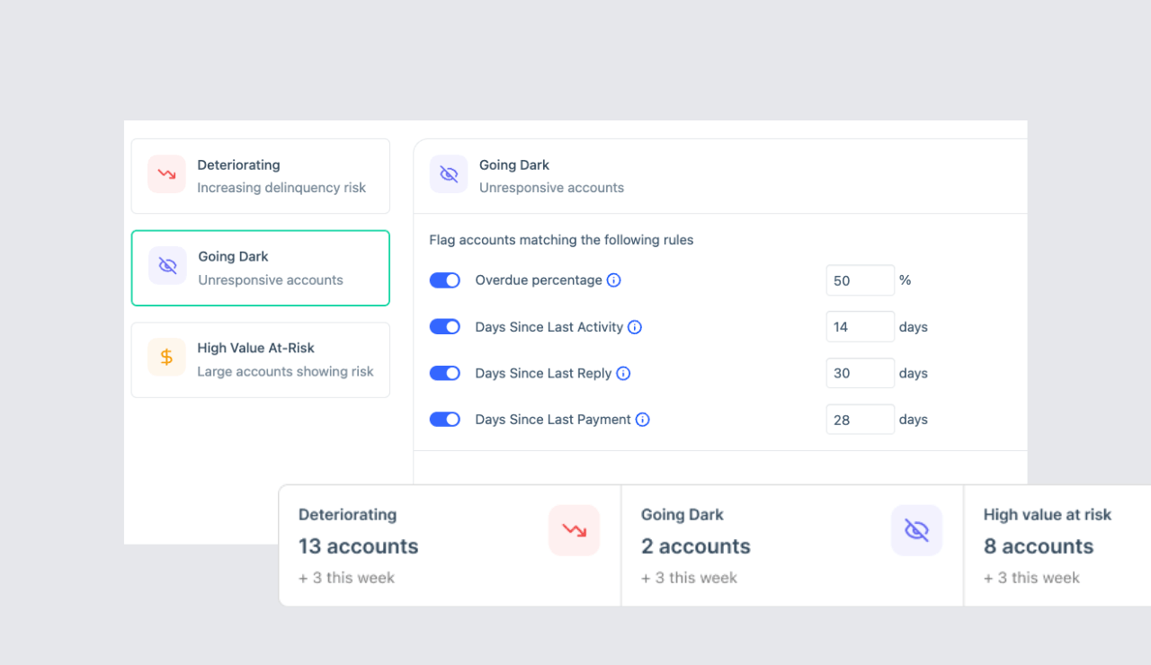 By factoring in how recently a customer has paid, Collect can more accurately identify accounts that are at risk, helping your team step in earlier and prioritise follow‑ups before payments stall.