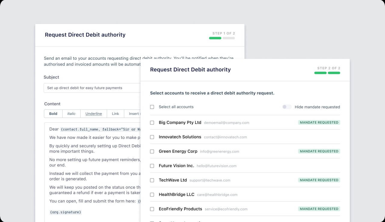 Auto‑pay gives your customers the ability to set up direct debit so their invoices are paid automatically on the due date. Once enabled, payments are collected without manual follow‑up, reducing overdue invoices and saving your team time.