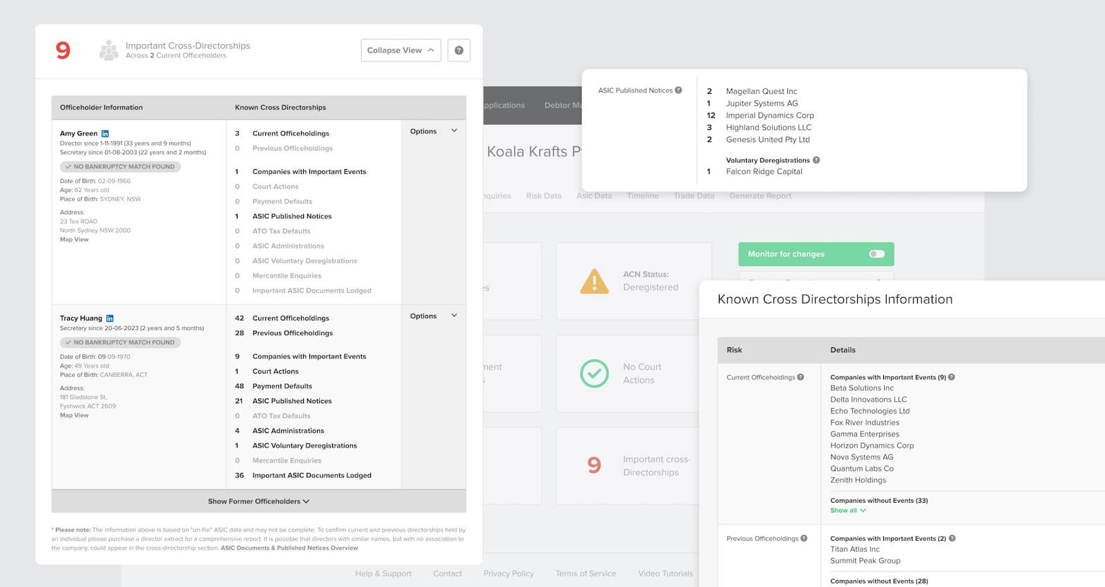 The cross directorship section has been refreshed to remove ambiguity and highlight important contextual details for easier risk assessment, including: